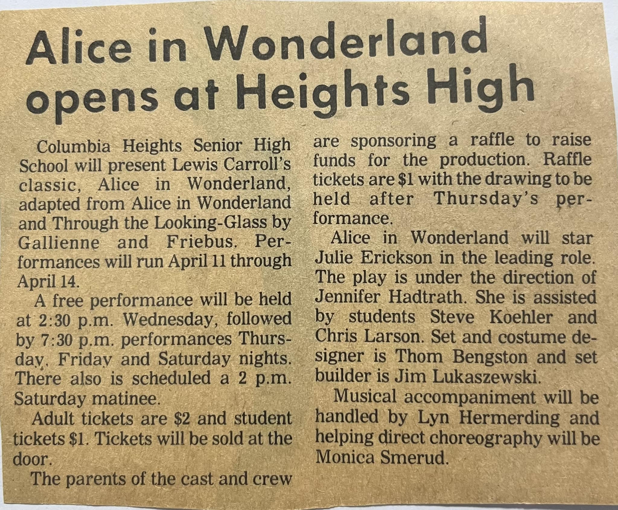 1984 Alice in Wonderland CHHS Poster